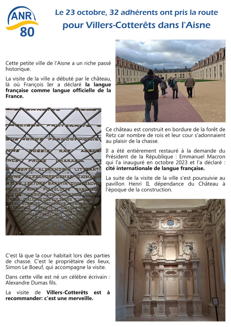 L’ANR 80 : 32 adhérents ont pris la route pour Villers-Cotterêts dans l’Aisne